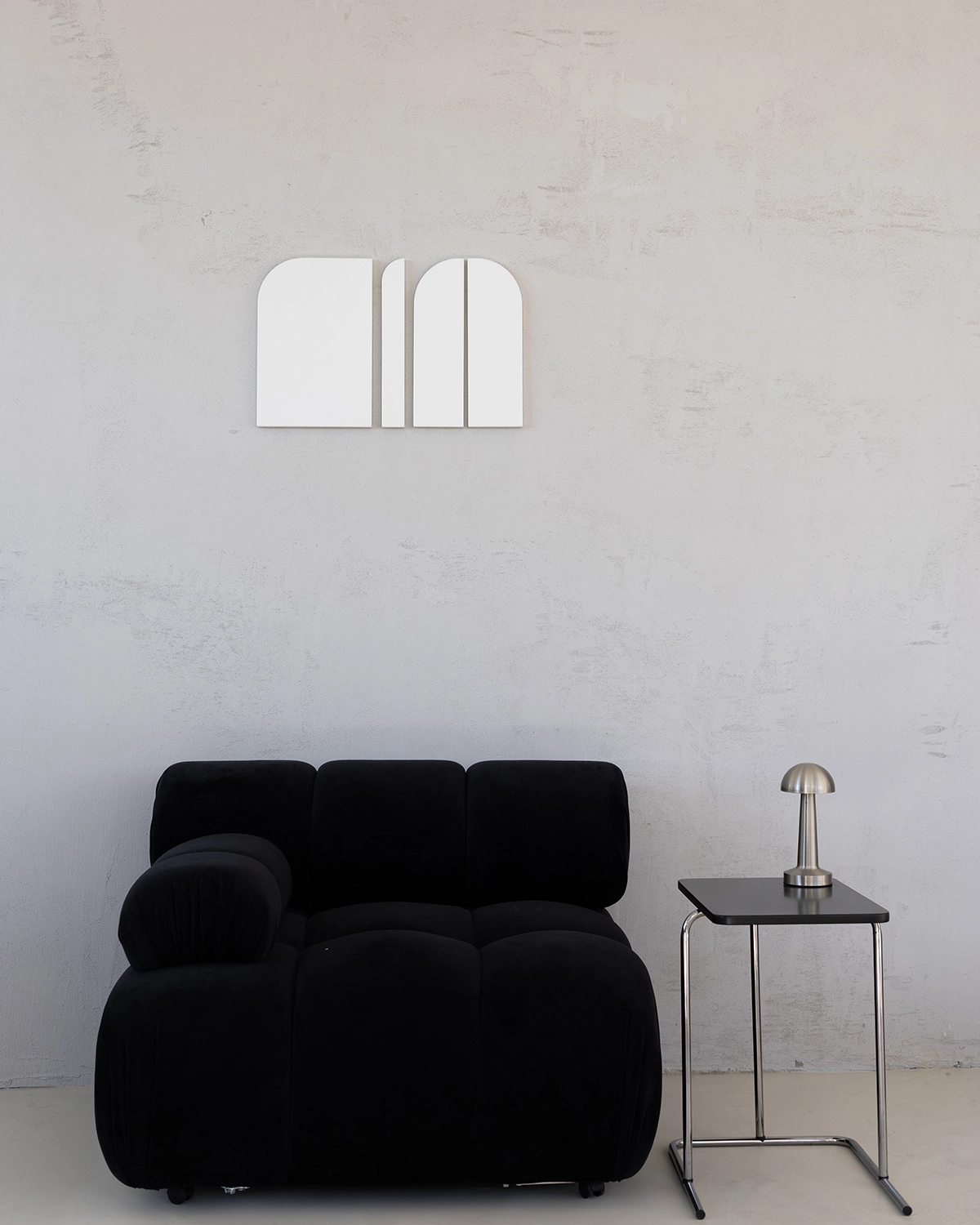 Rzeźba ścienna o miękkiej, zaokrąglonej linii inspirowanej architekturą. Prosta, czysta forma nadaje wnętrzu wrażenie spokoju i przestrzeni.